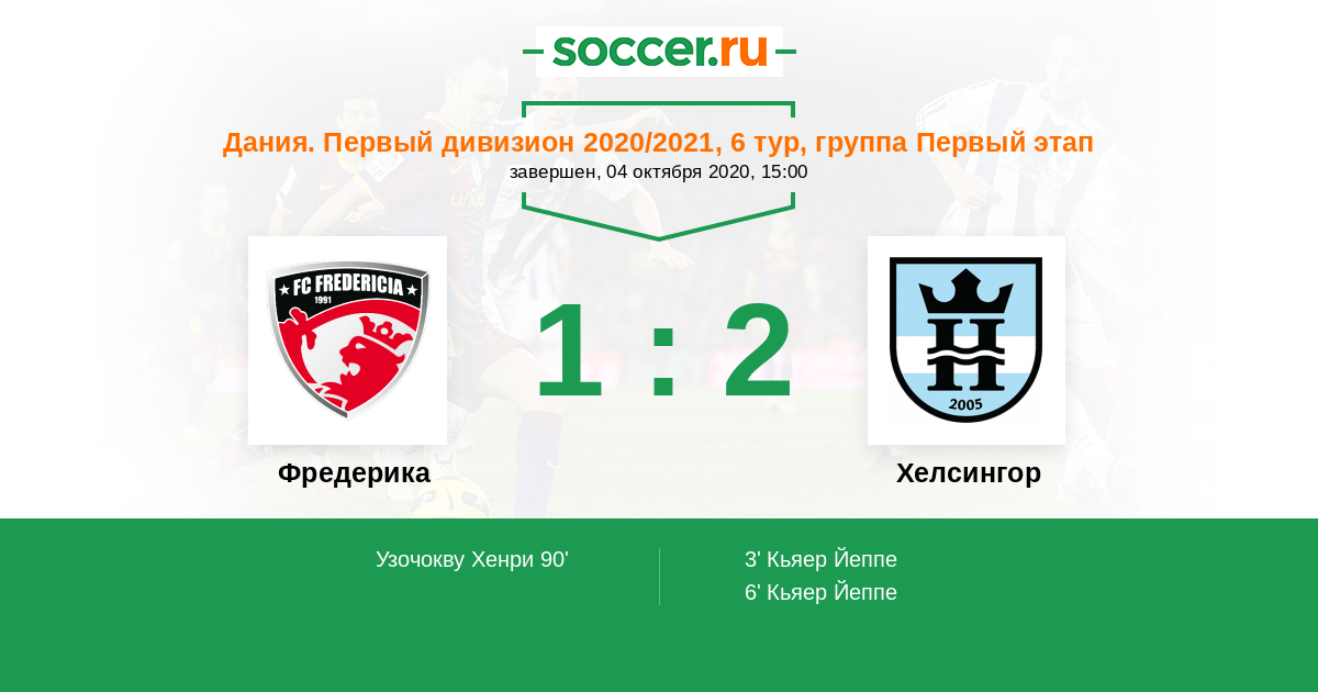 Протокол матча Фредерика против Хелсингор