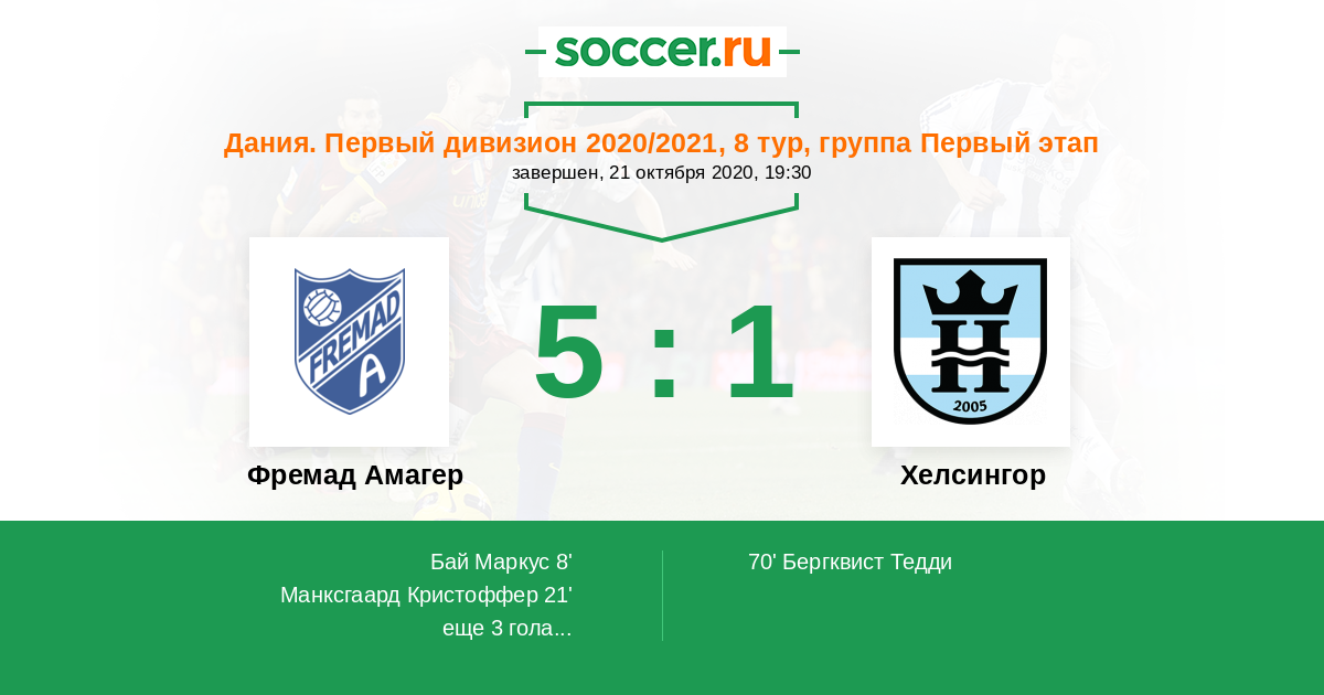 Протокол матча Фремад Амагер против Хелсингор