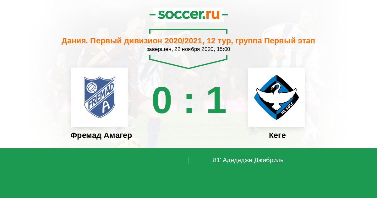 Протокол матча Фремад Амагер против Кеге