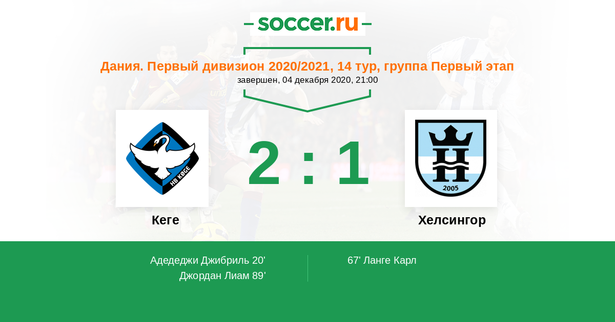 Протокол матча Кеге против Хелсингор