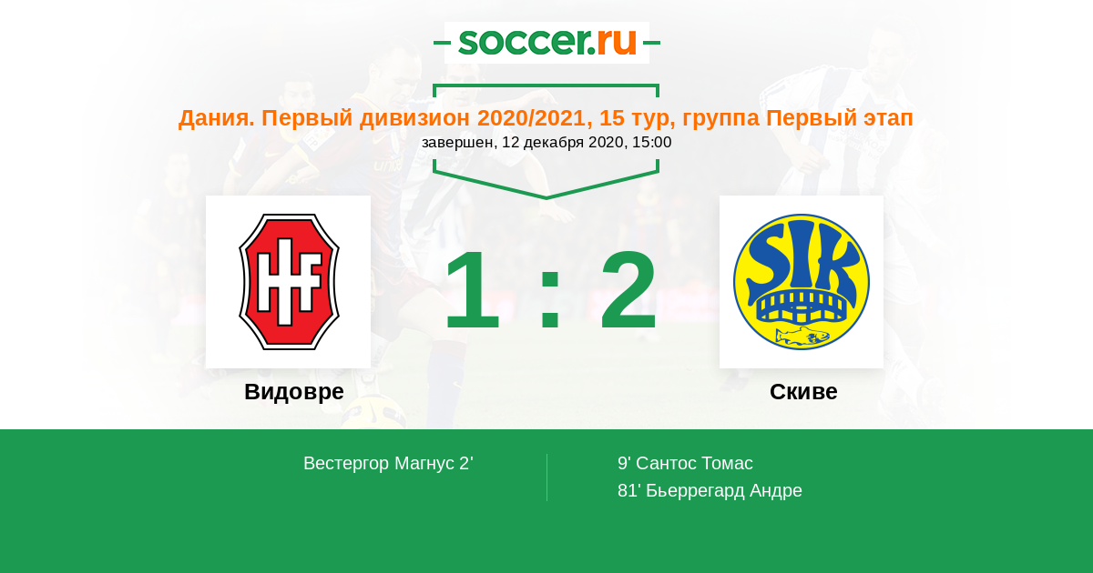 Протокол матча Видовре против Скиве