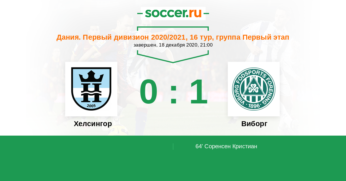Протокол матча Хелсингор против Виборг