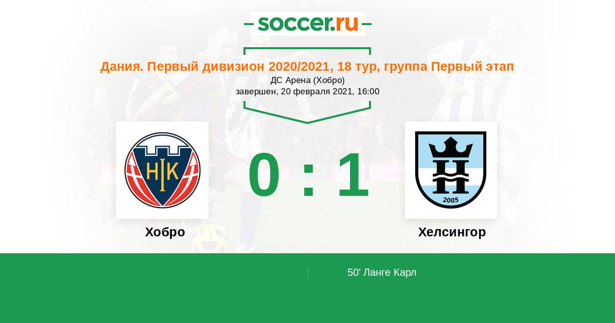 Протокол матча Хобро против Хелсингор