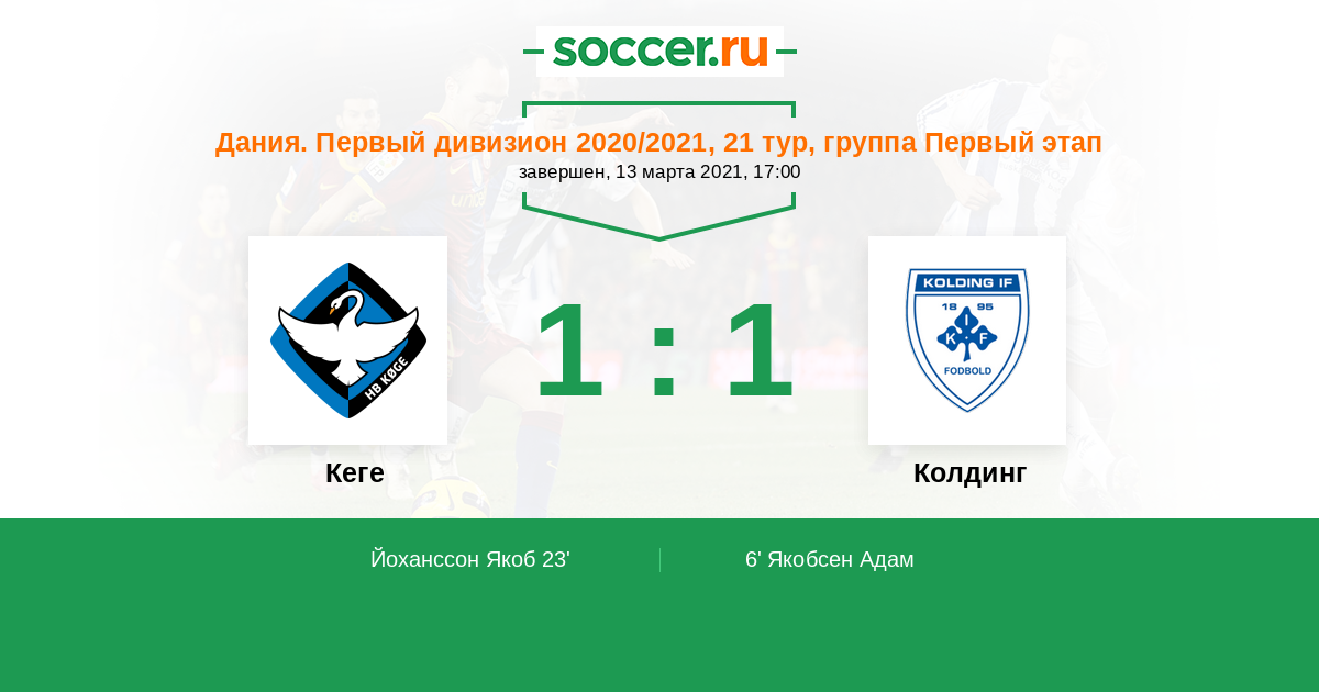 Протокол матча Кеге против Колдинг