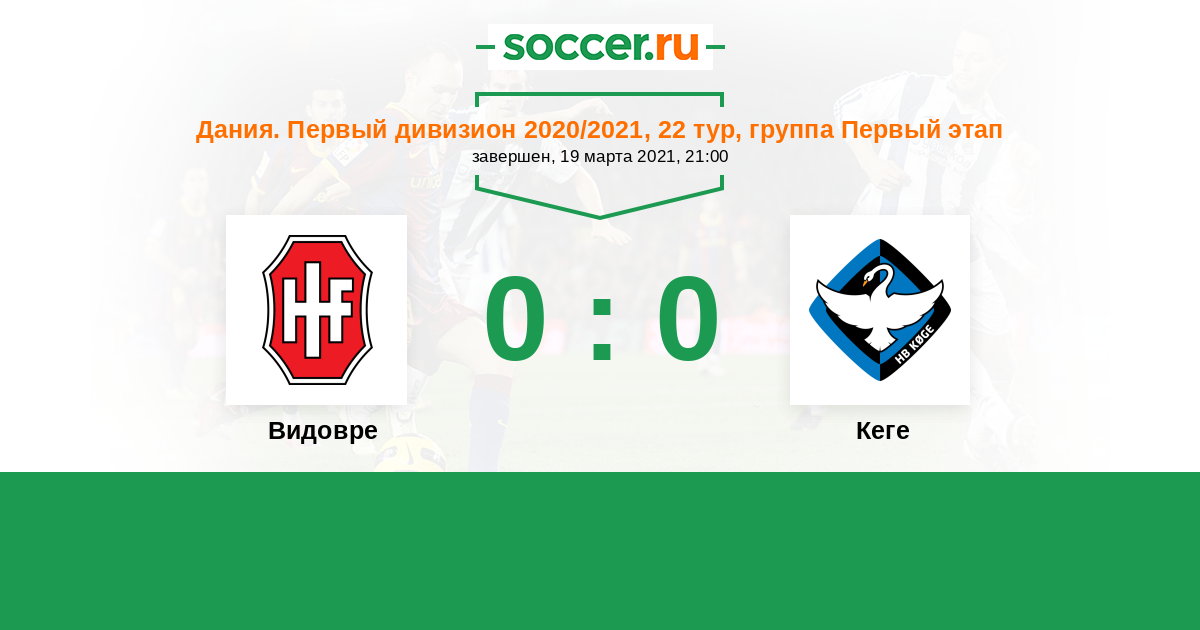 Протокол матча Видовре против Кеге