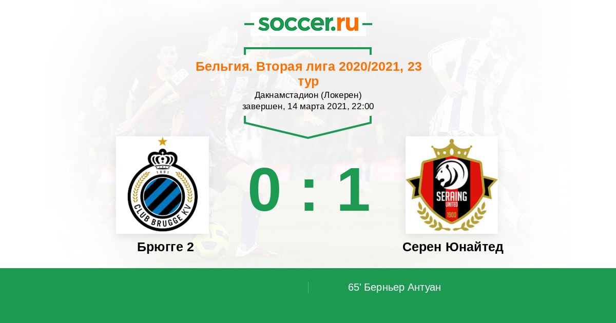 Протокол матча Брюгге 2 против Серен Юнайтед