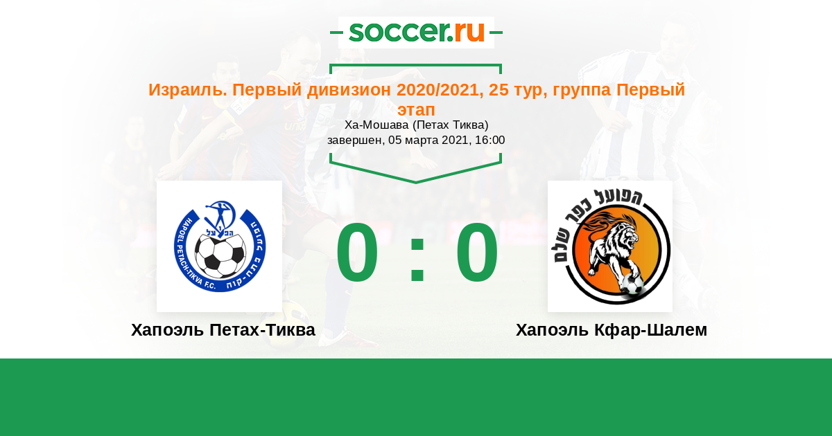 Протокол матча Хапоэль Петах-Тиква против Хапоэль Кфар-Шалем