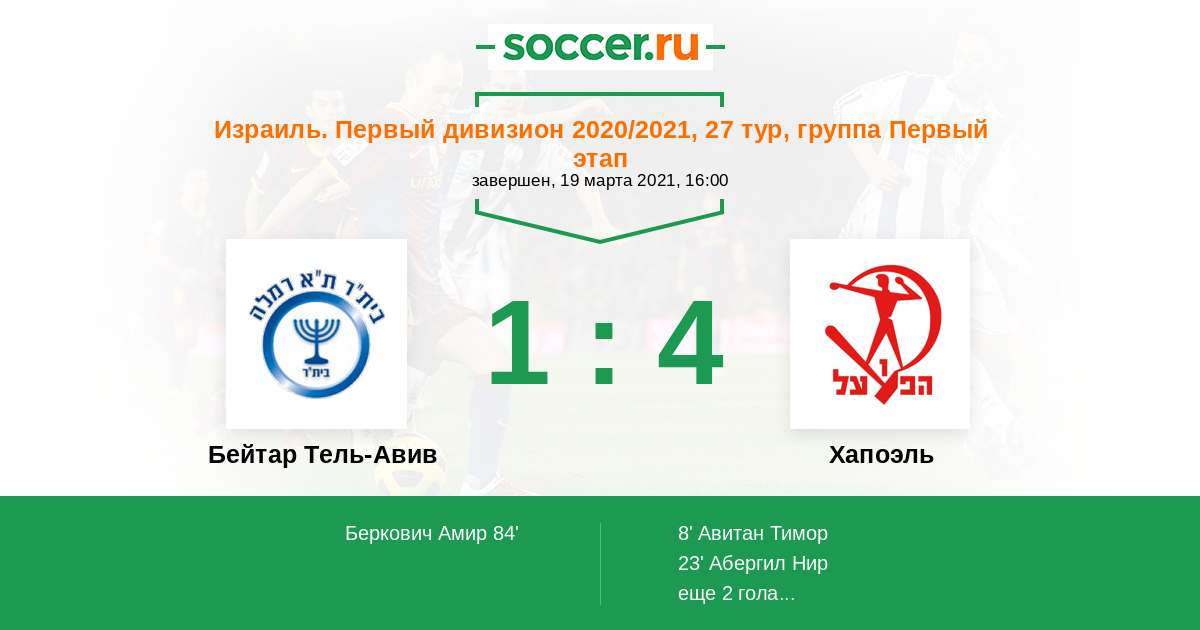 Протокол матча Бейтар Тель-Авив против Хапоэль