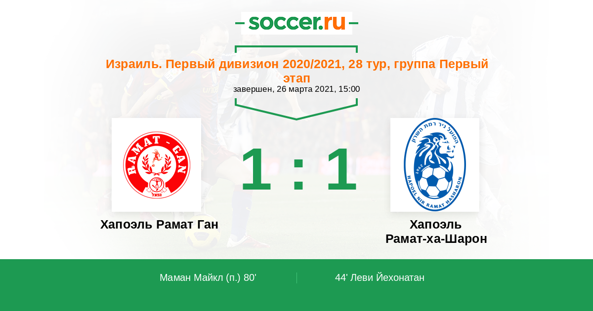 Протокол матча Хапоэль Рамат Ган против Хапоэль Рамат-ха-Шарон