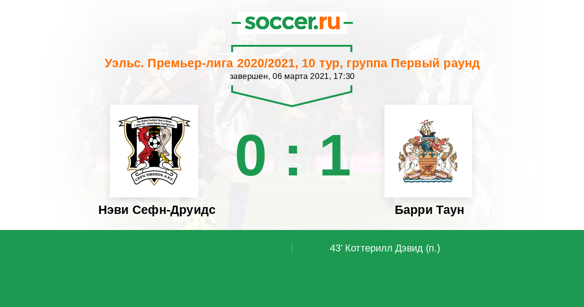 Протокол матча Нэви Сефн-Друидс против Барри Таун