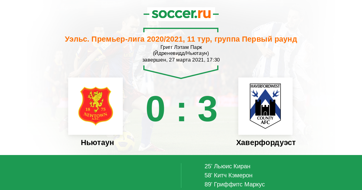 Протокол матча Ньютаун против Хаверфордуэст