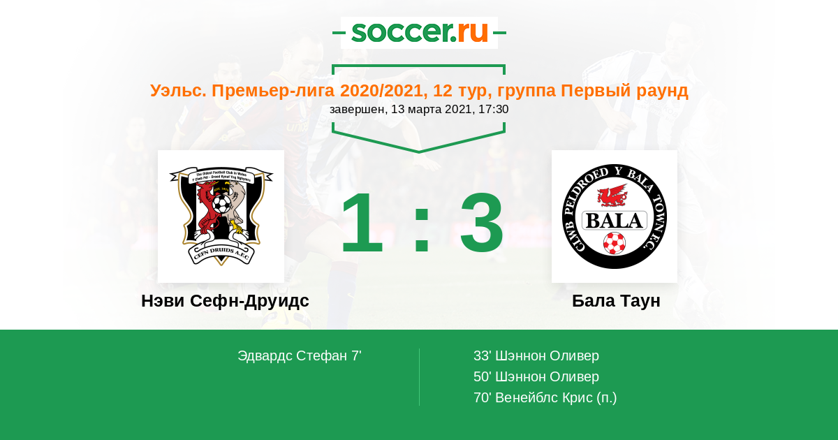 Протокол матча Нэви Сефн-Друидс против Бала Таун