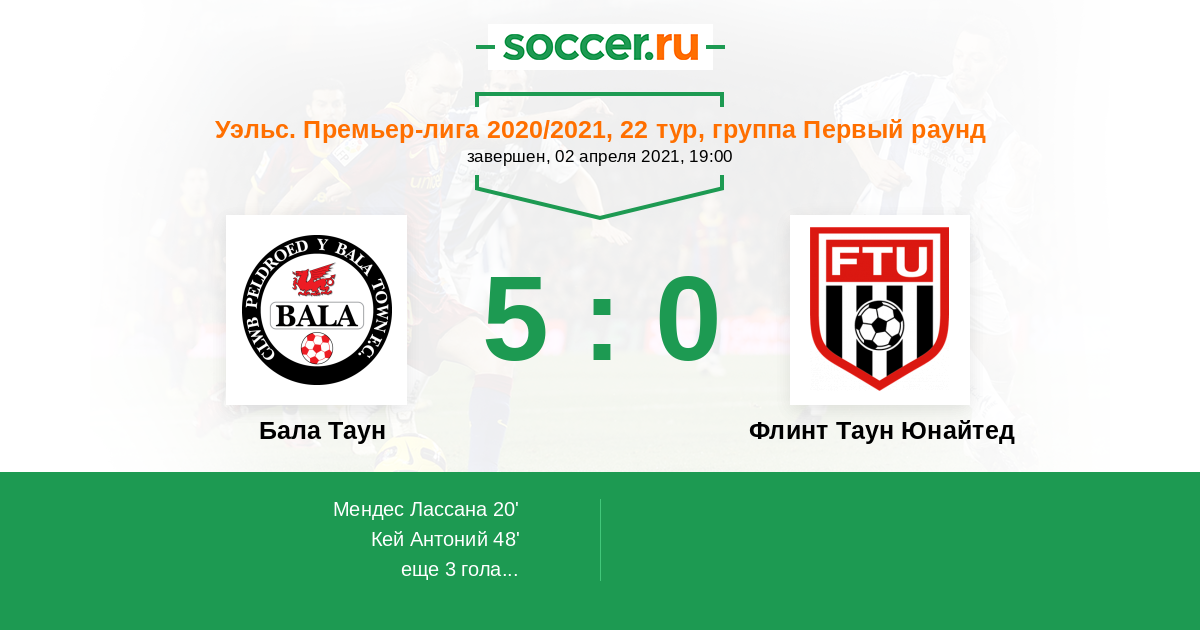 Протокол матча Бала Таун против Флинт Таун Юнайтед