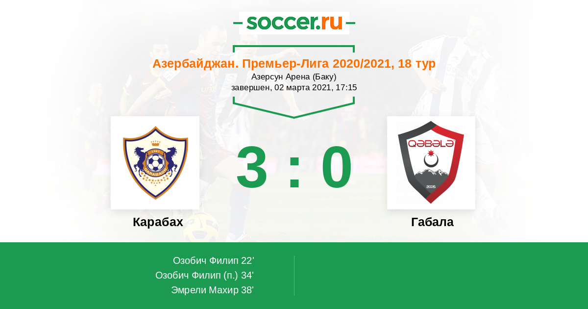 Протокол матча Карабах против Габала