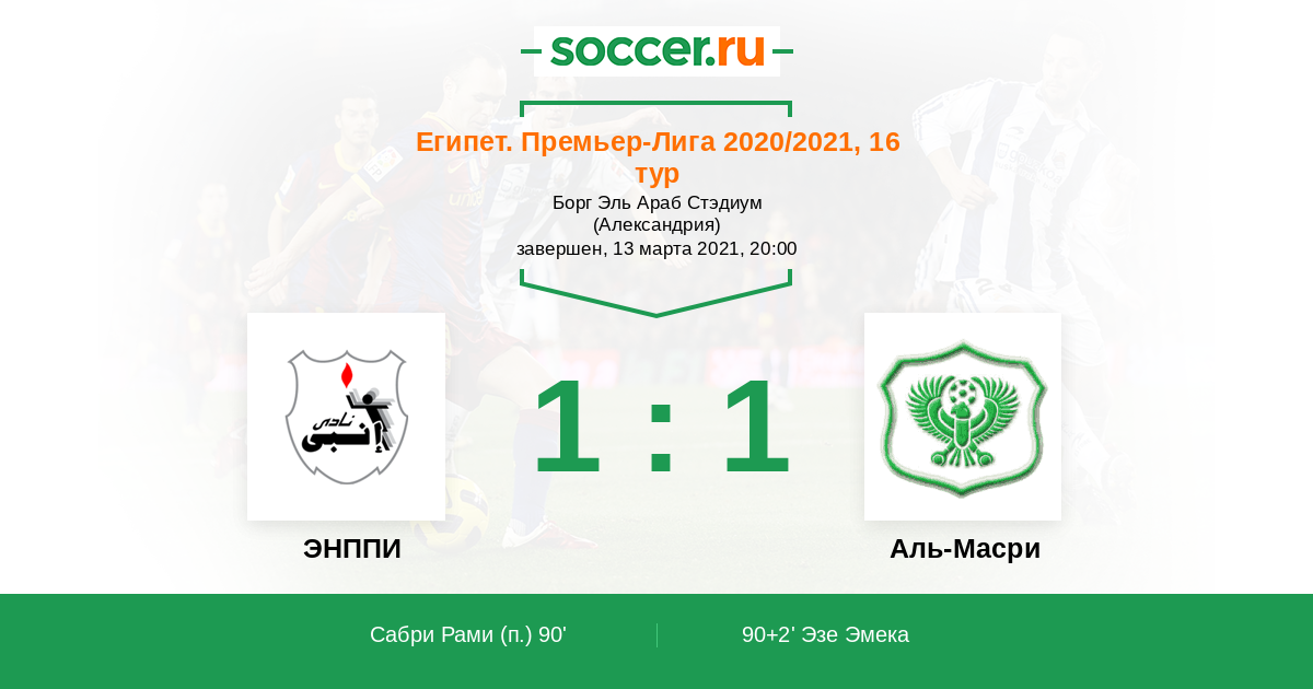 Протокол матча ЭНППИ против Аль-Масри