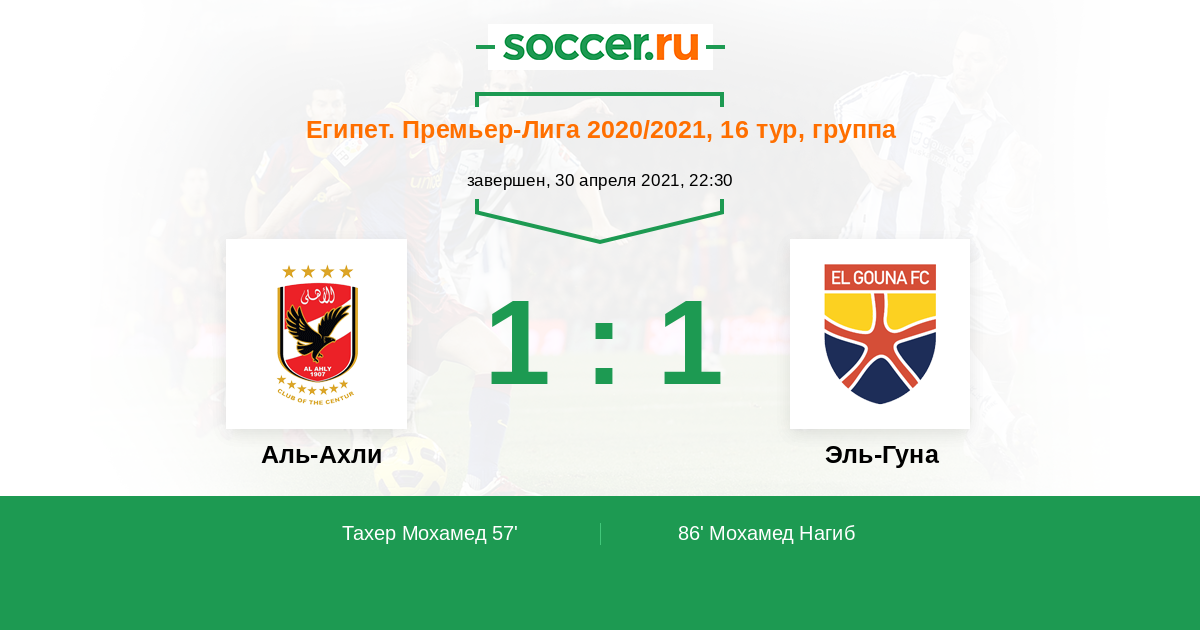 Протокол матча Аль-Ахли против Эль-Гуна