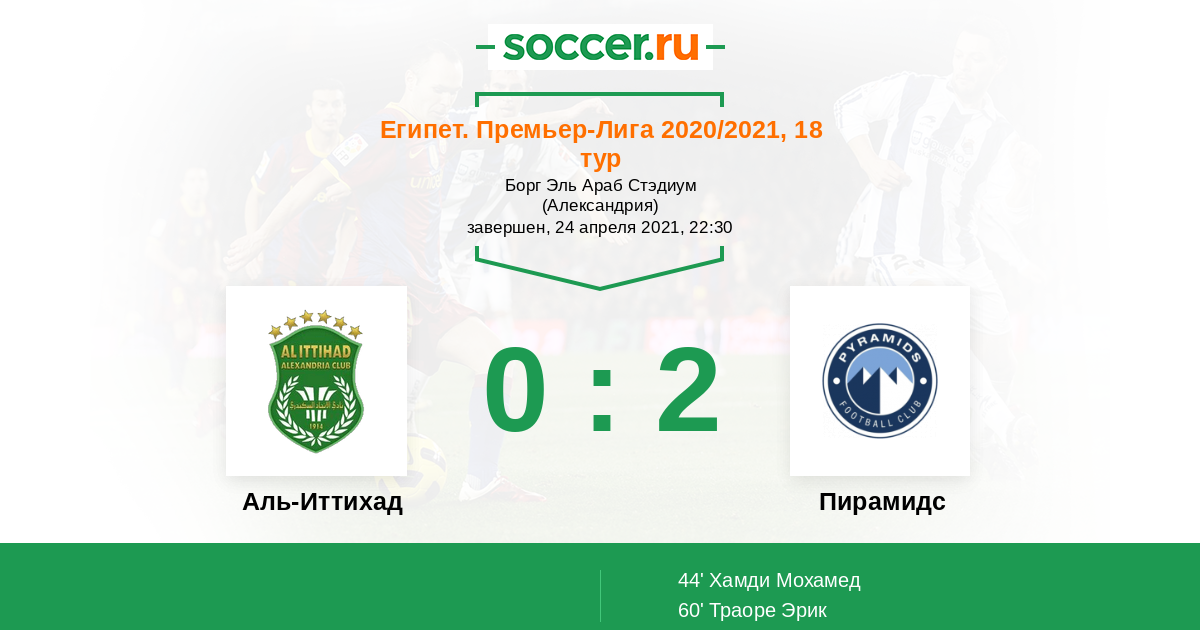 44' (0:1) Хамди Мохамед (21) (Тауфик Ахмед (12))