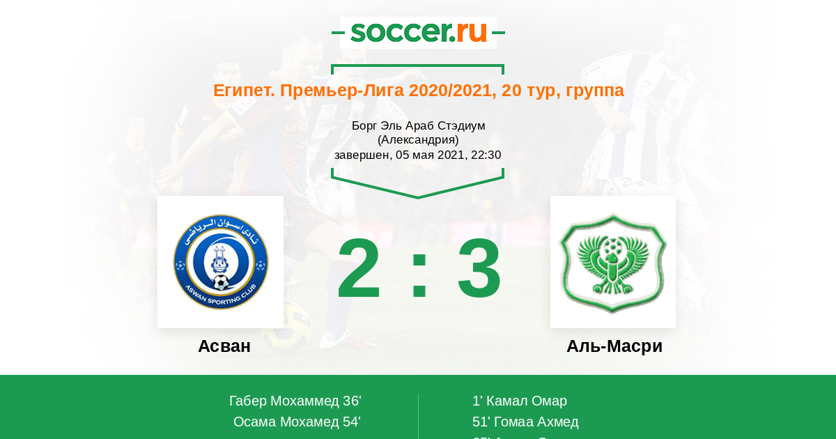 Протокол матча Асван против Аль-Масри