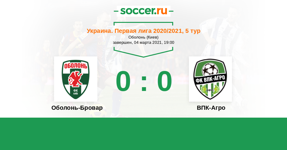 Протокол матча Оболонь-Бровар против ВПК-Агро
