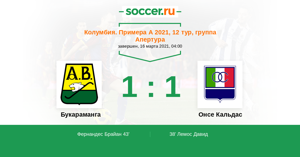 Протокол матча Букараманга против Онсе Кальдас