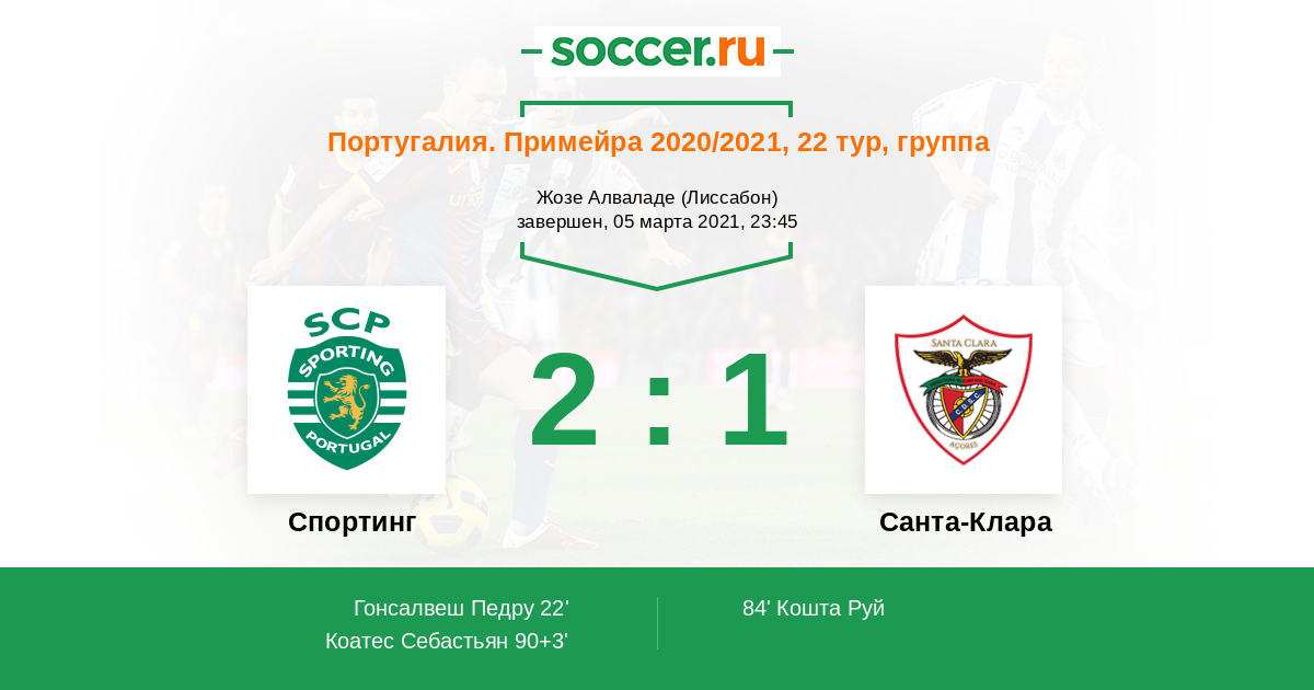 Протокол матча Спортинг против Санта-Клара