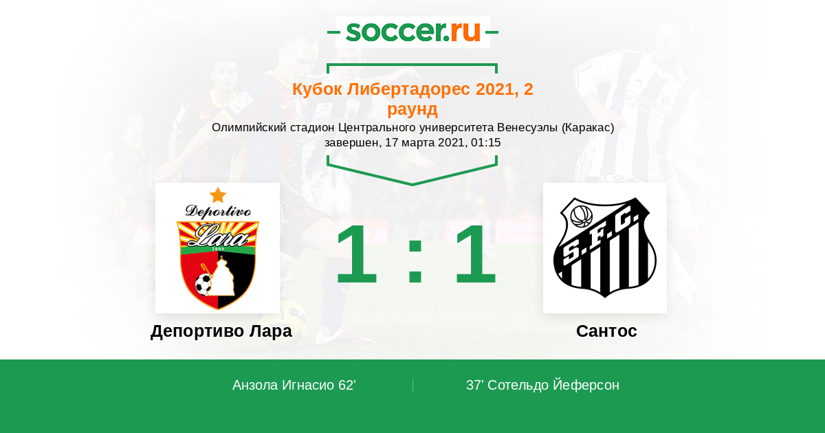 Протокол матча Депортиво Лара против Сантос