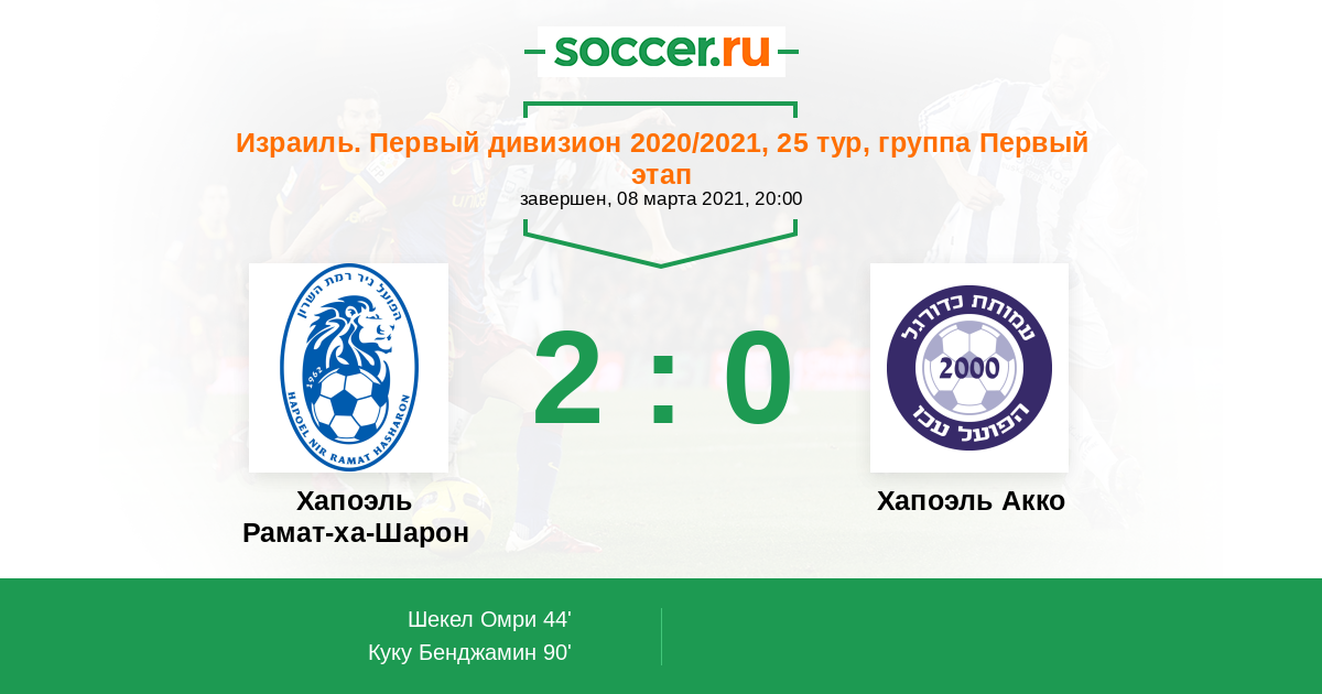 Протокол матча Хапоэль Рамат-ха-Шарон против Хапоэль Акко