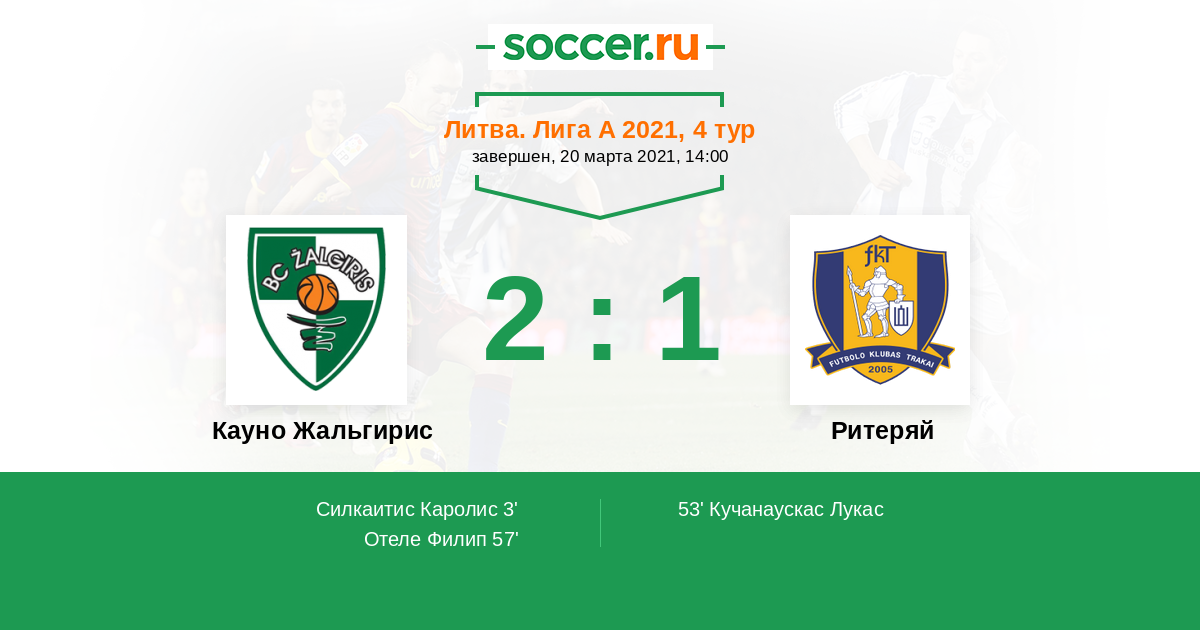 Протокол матча Кауно Жальгирис против Ритеряй