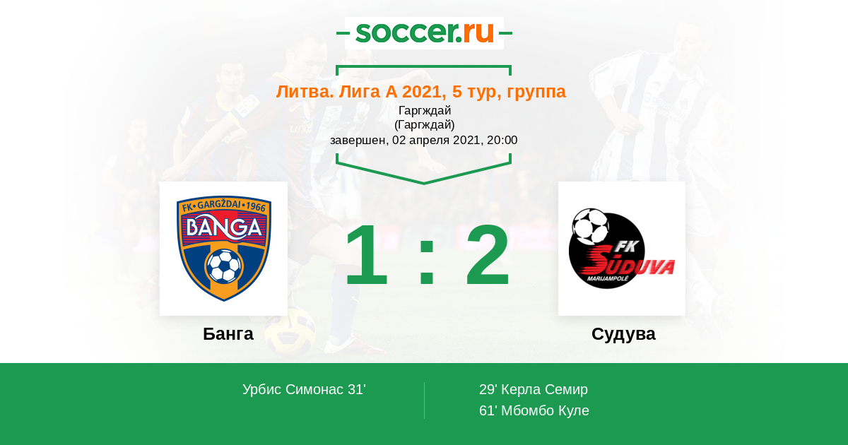 61' (1:2) Мбомбо Куле (22) (Аусменди Хаби (11))