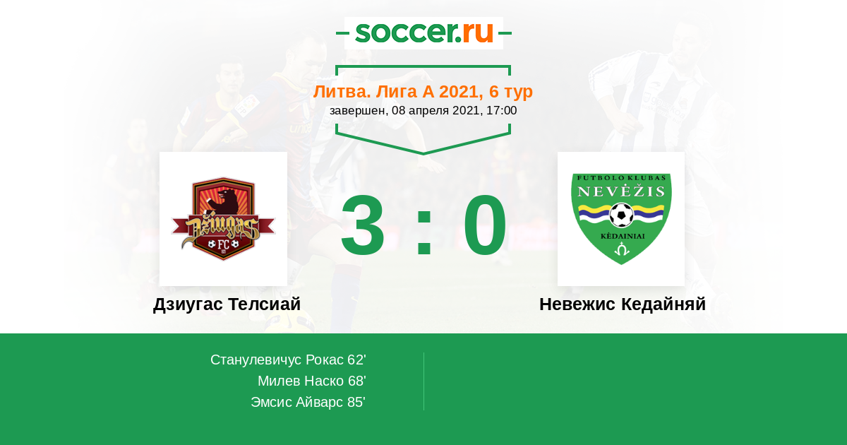 Протокол матча Дзиугас Телсиай против Невежис Кедайняй