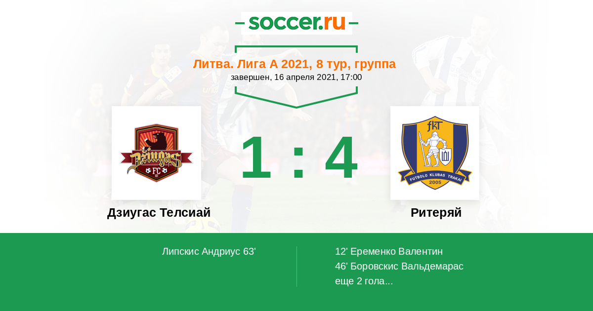 Протокол матча Дзиугас Телсиай против Ритеряй
