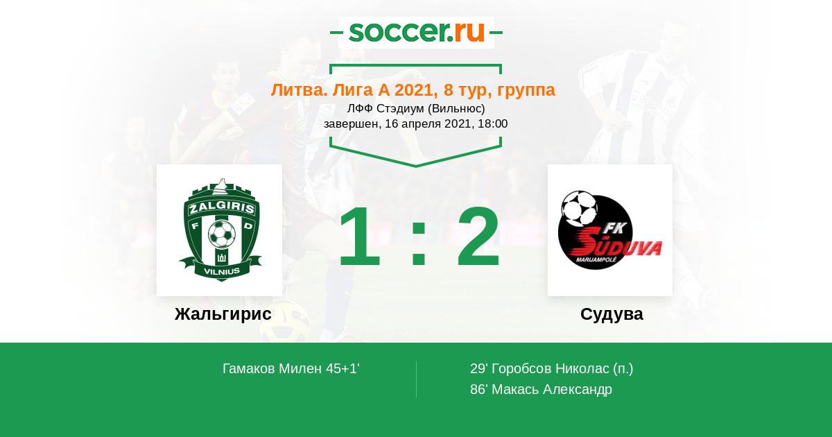 Протокол матча Жальгирис против Судува