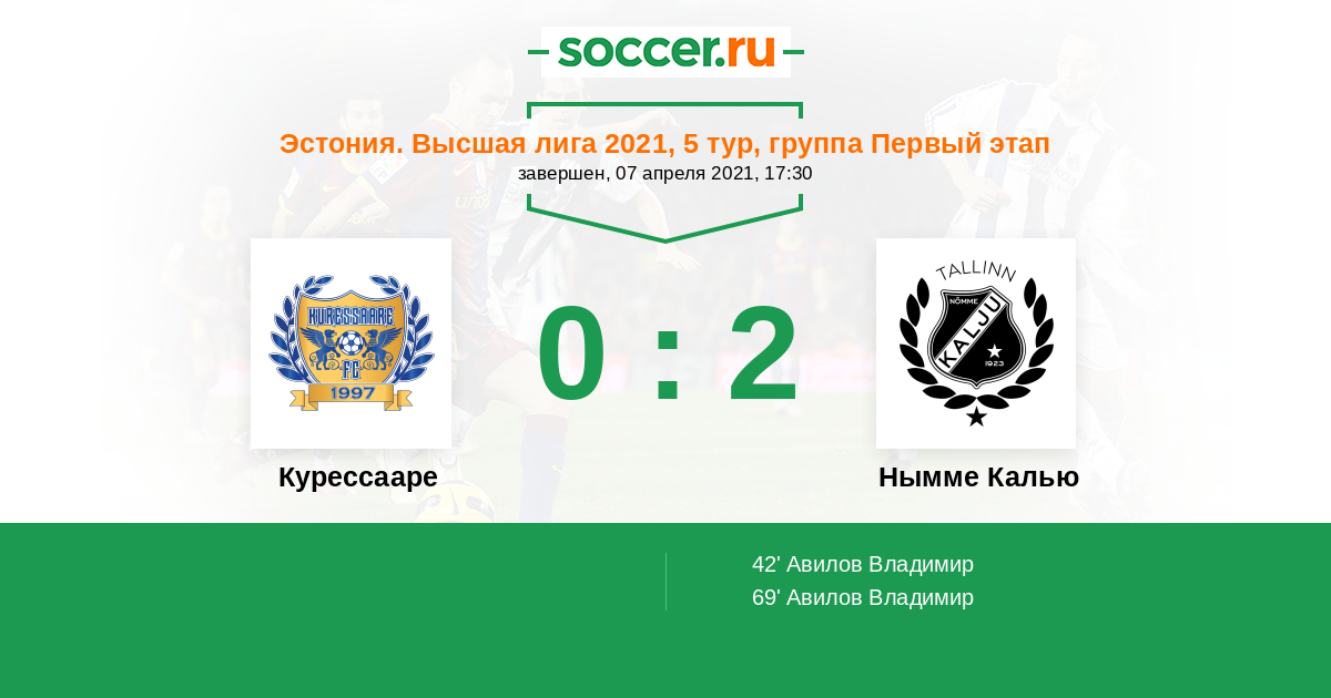 Протокол матча Курессааре против Нымме Калью