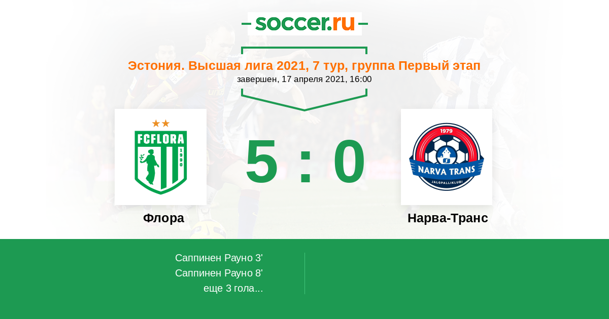Протокол матча Флора против Нарва-Транс