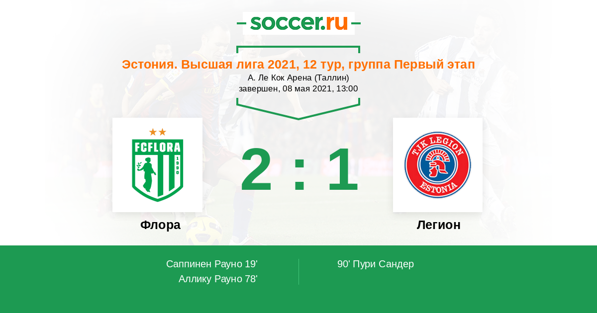 Протокол матча Флора против Легион