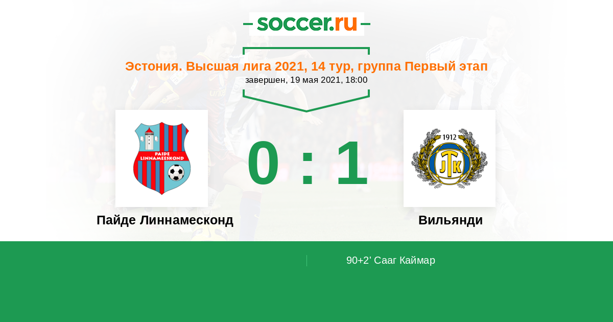 Протокол матча Пайде Линнамесконд против Вильянди