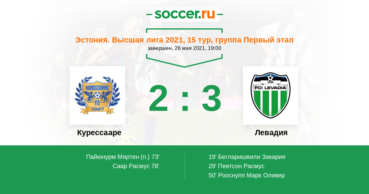 Протокол матча Курессааре против Левадия