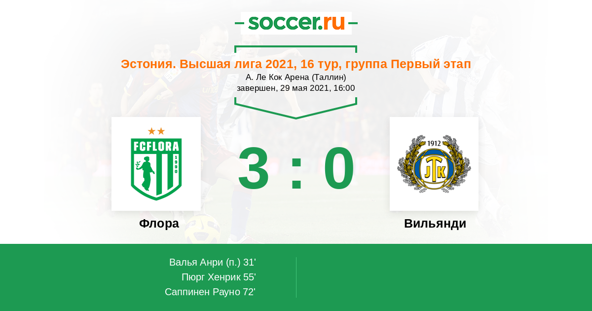 Протокол матча Флора против Вильянди