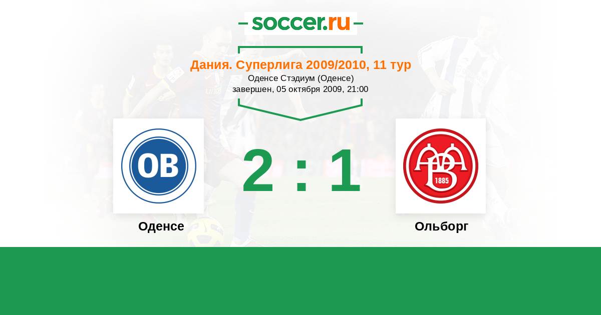 Дания. Суперлига 02.11.2009 Оденсе Логотип футбольный клуб Оденсе 1:1 Логотип футбольный клуб Ольборг Ольборг