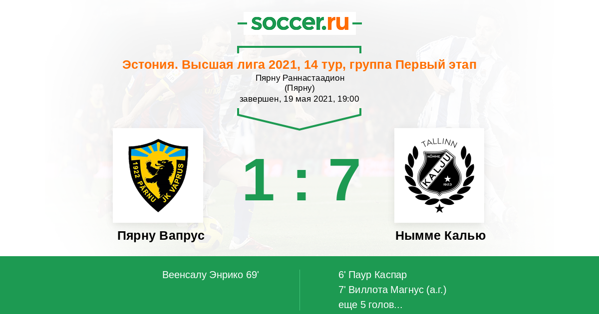 Протокол матча Пярну Вапрус против Нымме Калью