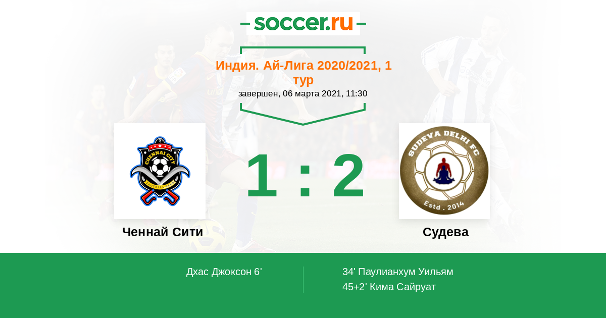 Протокол матча Ченнай Сити против Судева