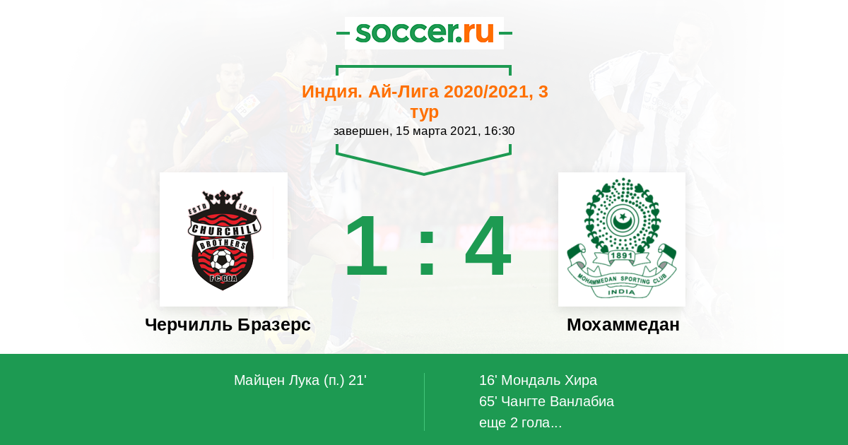 Протокол матча Черчилль Бразерс против Мохаммедан