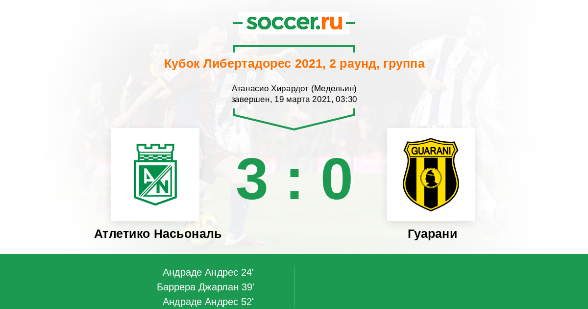 Протокол матча Атлетико Насьональ против Гуарани