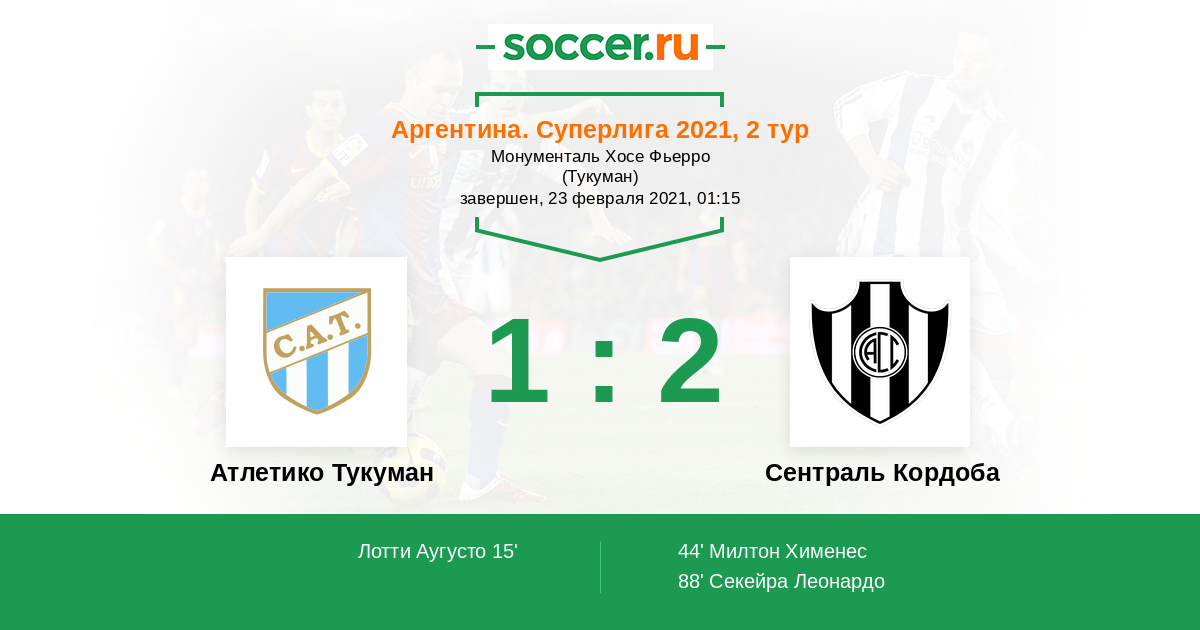 Протокол матча Атлетико Тукуман против Сентраль Кордоба