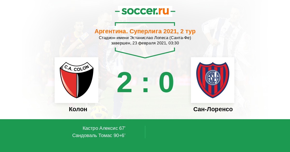 Гол90+6' (2:0) Сандоваль Томас (32)