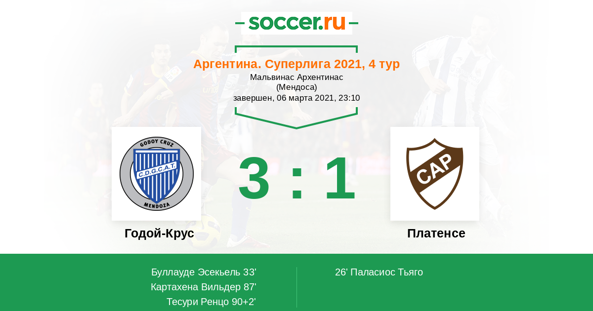 Протокол матча Годой-Крус против Платенсе
