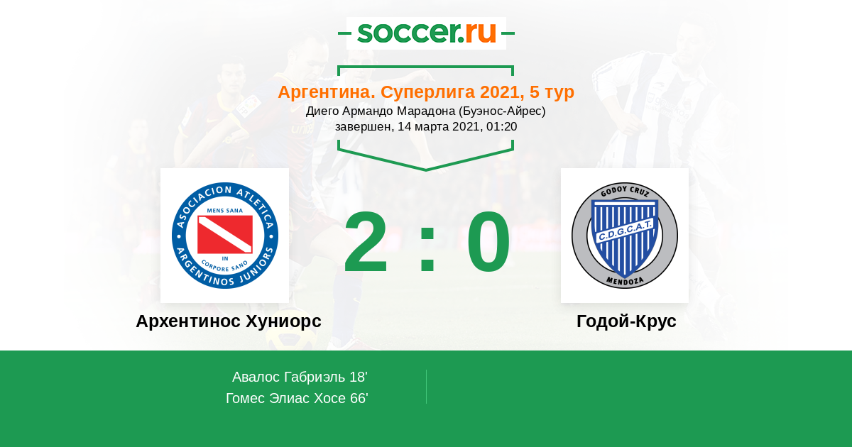 Протокол матча Архентинос Хуниорс против Годой-Крус
