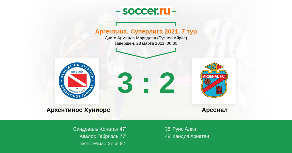 Протокол матча Архентинос Хуниорс против Арсенал