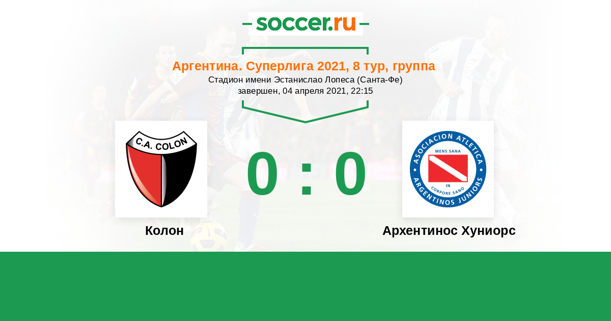 Протокол матча Колон против Архентинос Хуниорс