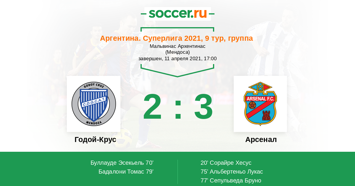 Протокол матча Годой-Крус против Арсенал